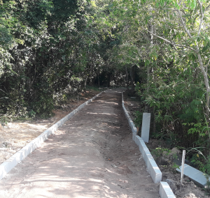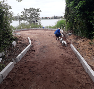 Calçada pavimentada em concreto de largura reduzida que dá acesso aos lotes lindeiros, no lado oposto da margem da Lagoa. Como muitas das edificações preexistentes não contam com calçadas definidas e padronizadas, o projeto prevê um calçamento mínimo de 1,2m de largura;